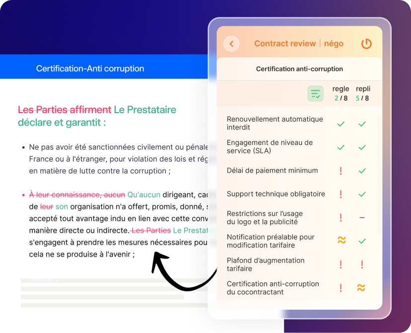 Révisez vos contrats dans Word, avec l’aide de l’IA. Détection des écarts, contrôle de conformité et reformulations pour négocier plus vite et en toute sécurité.